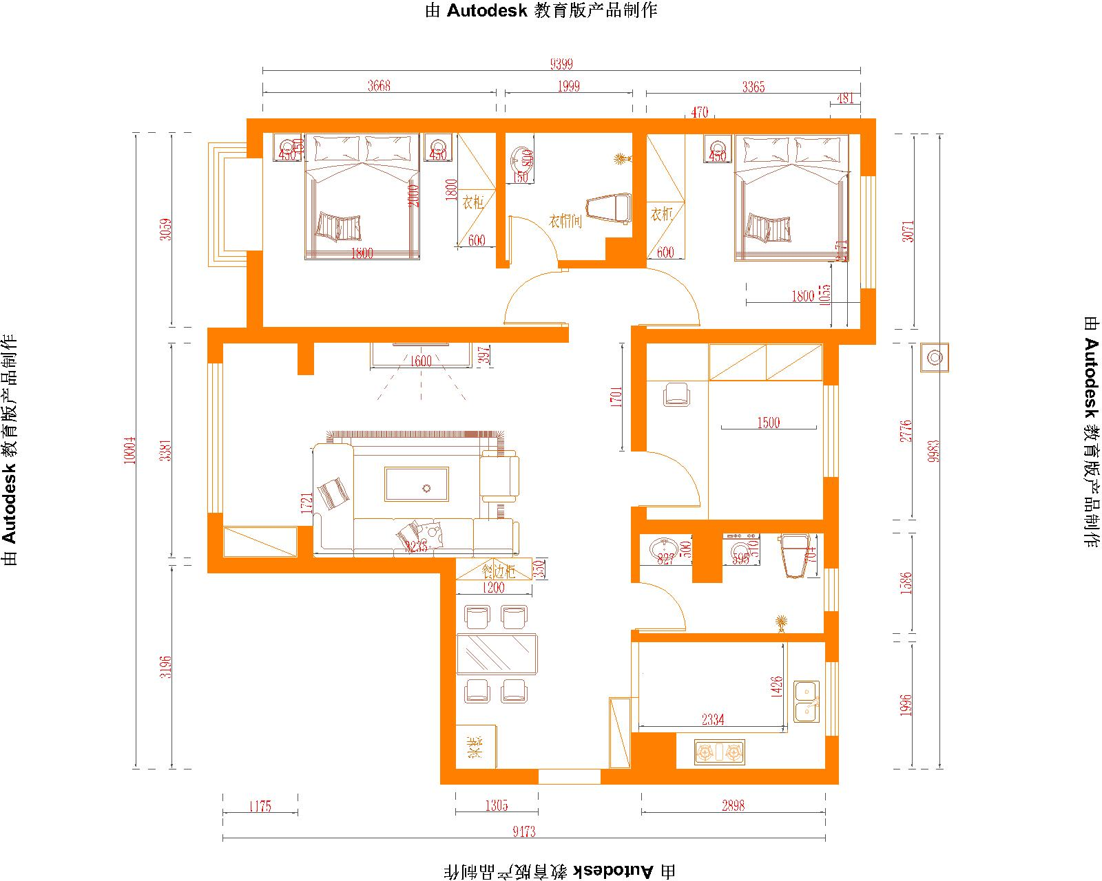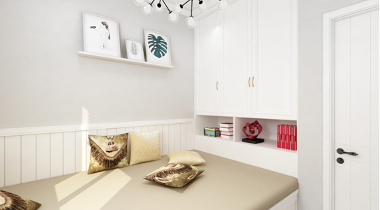3、 此戶型次臥室平米比較小,所以后期再規(guī)劃設(shè)計(jì)上面可以采用整體全屋定制形式