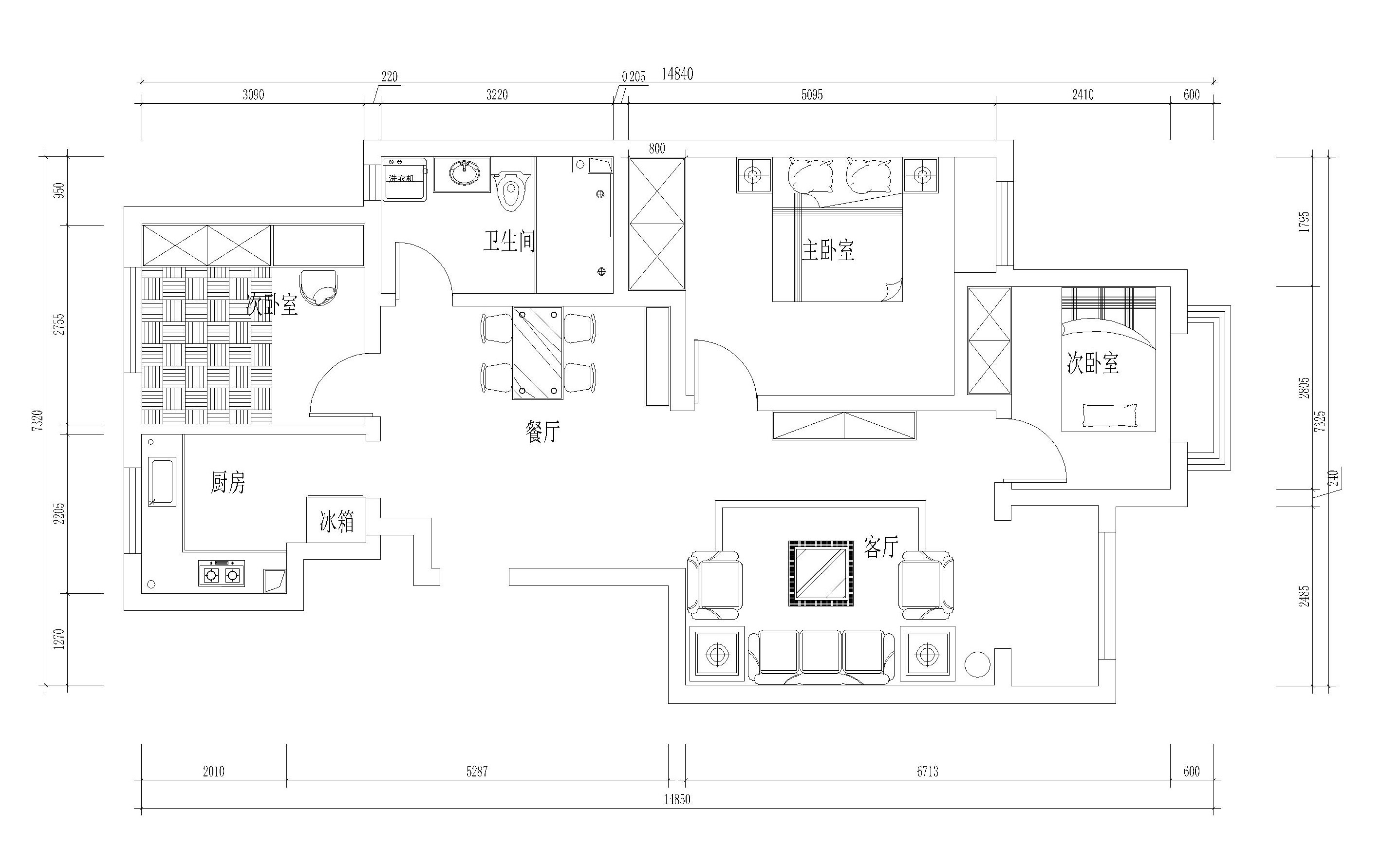 3、主臥面積雖然不算小,但是空間布局浪費(fèi)空間多。
