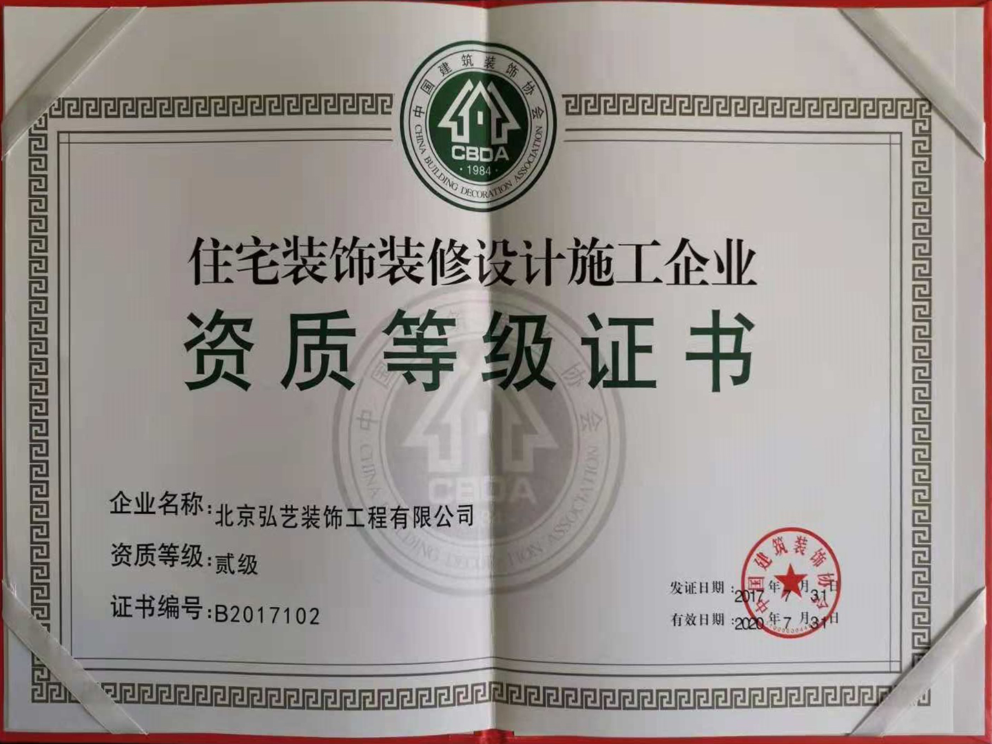 住宅裝飾裝修設(shè)計(jì)施工企業(yè)二級(jí)資質(zhì)證書(shū)