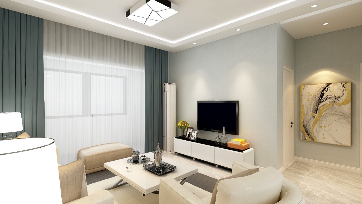 這套現(xiàn)代簡約的客廳設(shè)計以淺色為主色,再運用淡藍色的墻漆和米白色的沙發(fā)搭配,讓客廳充滿現(xiàn)代的氣息,十分的簡潔時尚。米白色的沙發(fā)搭配灰色的地磚和藍色的窗簾及淡藍色的墻漆,讓簡約的客廳充滿現(xiàn)代時尚溫馨的氣息,所以說現(xiàn)代簡約并不是過于強調(diào)簡約的設(shè)計,而是簡約和實用美觀的結(jié)合。