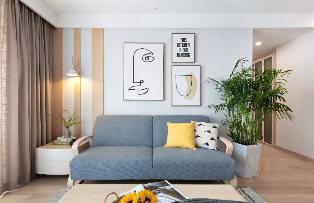 然后家具進(jìn)場(chǎng),做好軟裝搭配,布置好窗簾、窗簾桿、沙發(fā)、地毯、裝飾畫(huà)、植物盆栽等等。