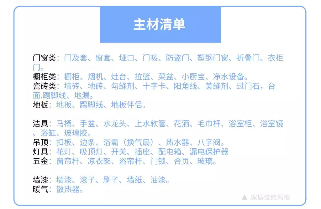 比如插座、開(kāi)關(guān)、燈具、臺(tái)盆、浴缸、洗衣機(jī)、熱水器、浴霸、水龍頭、淋浴、馬桶、空調(diào)等等。
