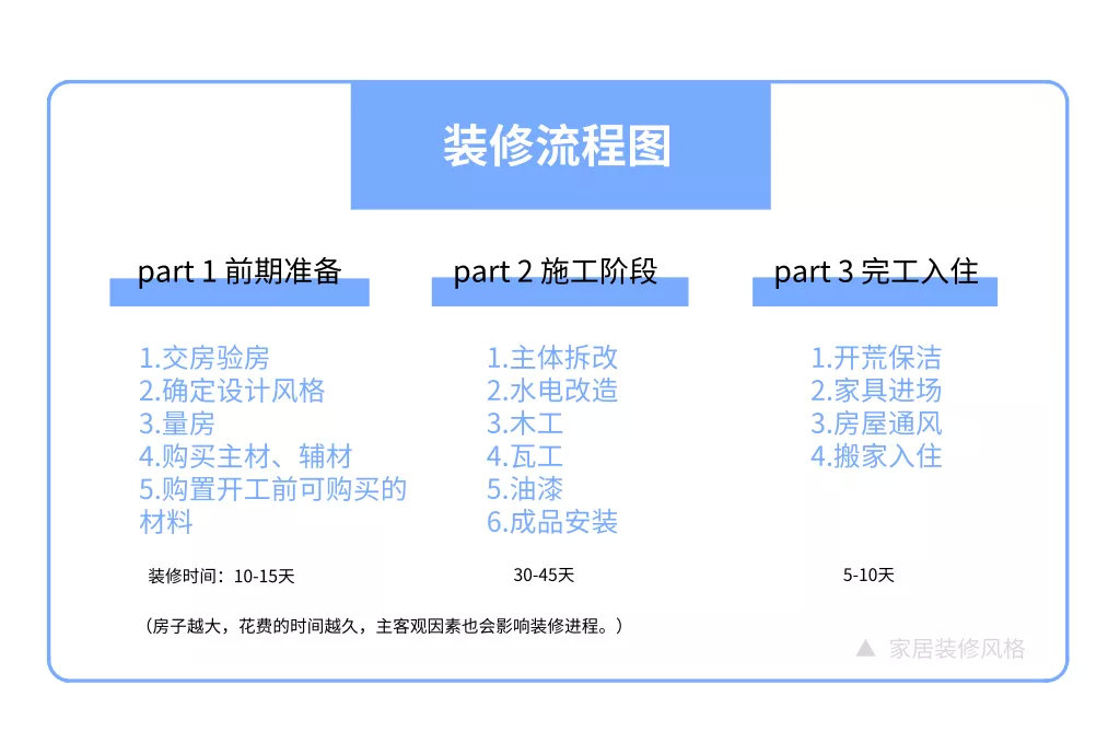 所以,對(duì)于裝修小白來(lái)說(shuō),熟知裝修流程是很有必要的。今天,糖糖專(zhuān)門(mén)整理了一篇新房裝修流程,希望能給大家一個(gè)參考和借鑒,起碼心里有底。